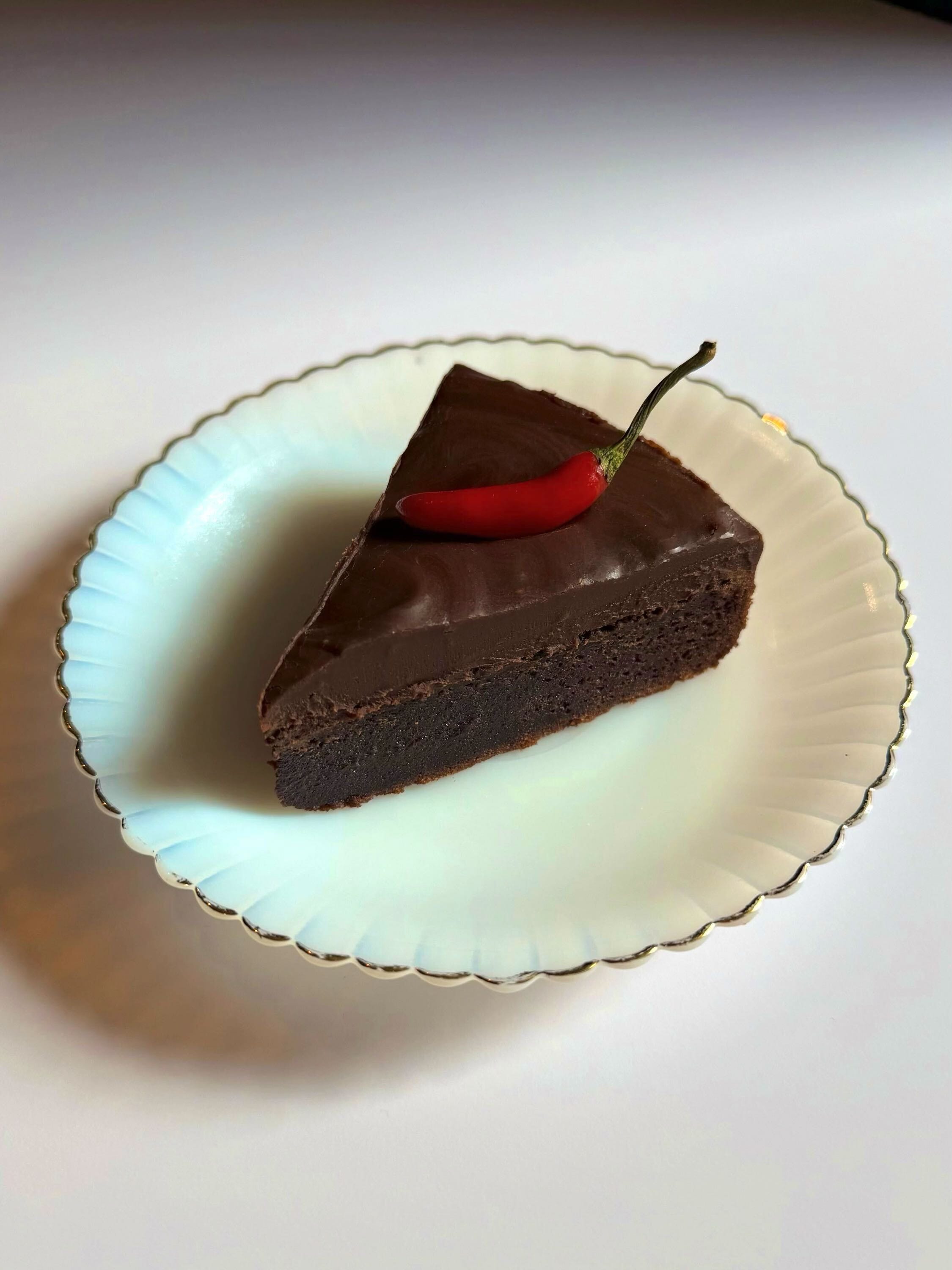 Chocolate Mochi Cake with Thai Chili Ganache
